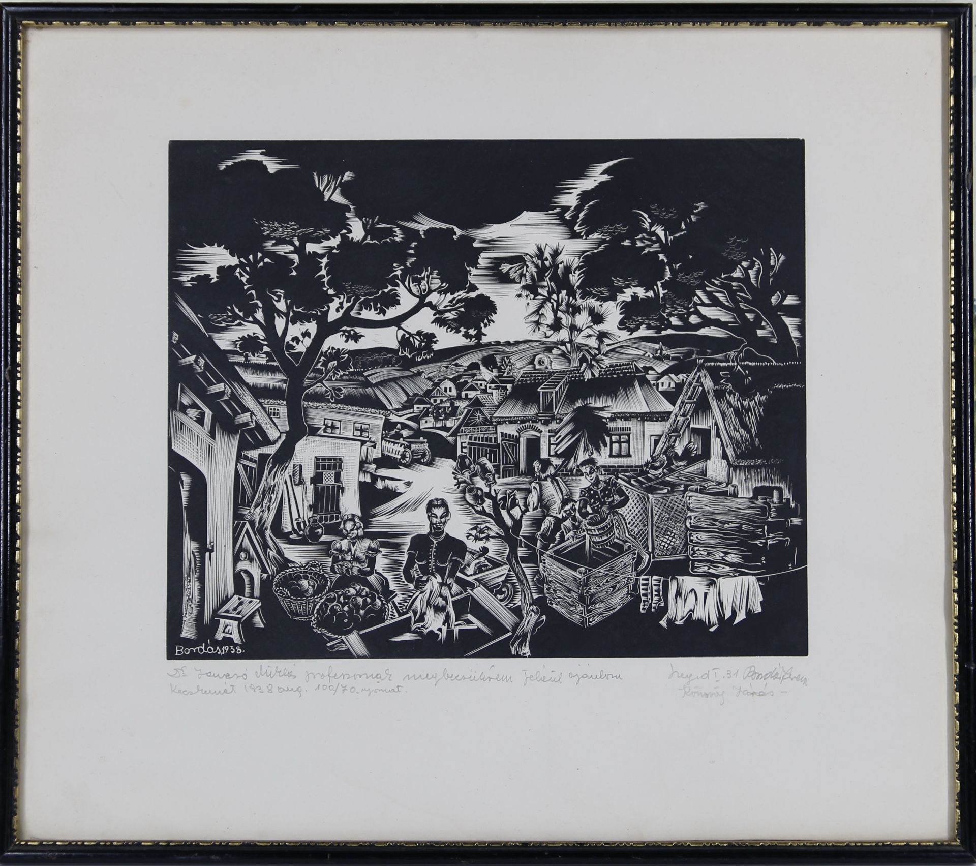 fametszet, szignált, ajánlással / 22 x 27