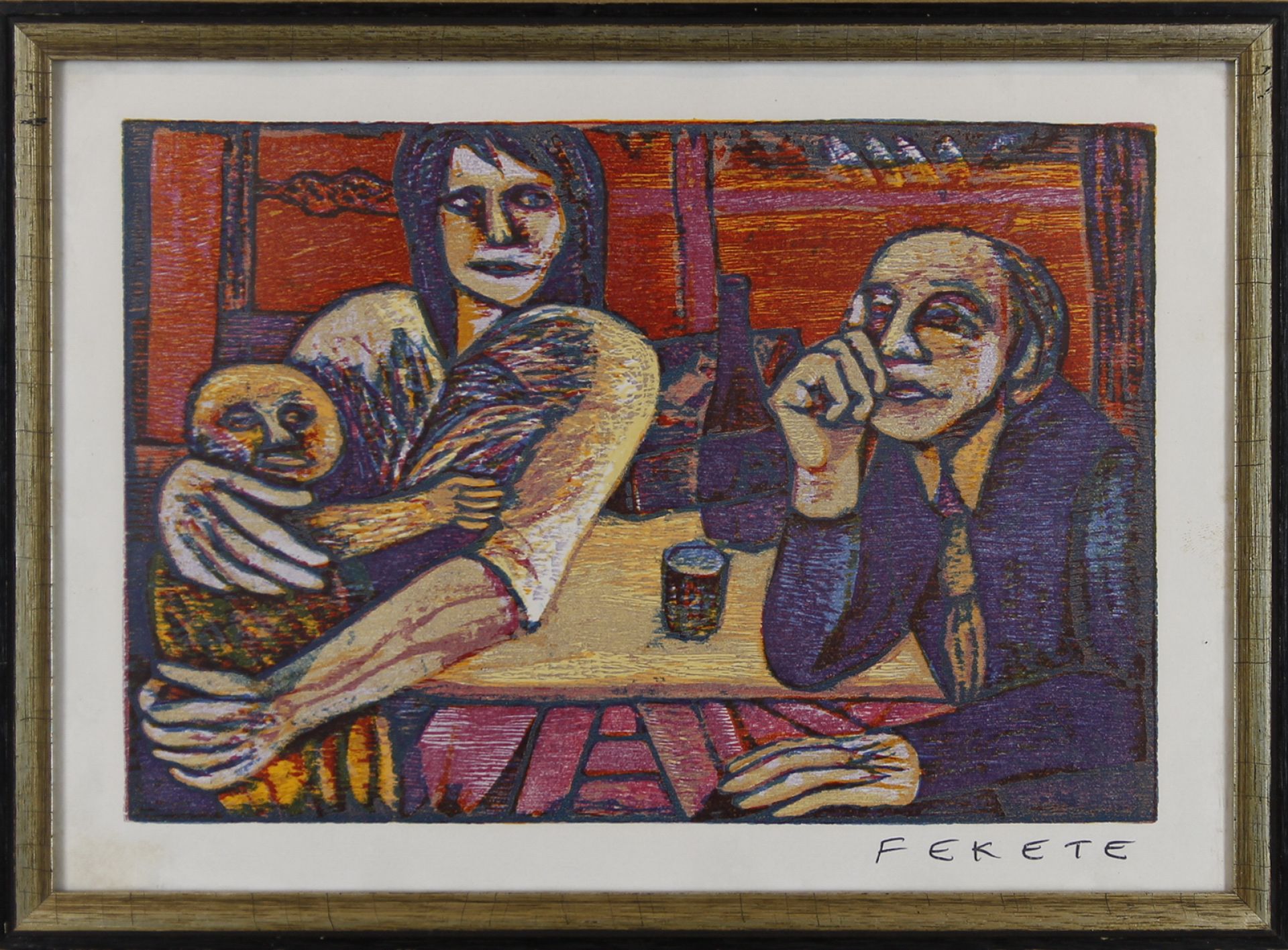 színes fametszet, szignált / 17 x 25