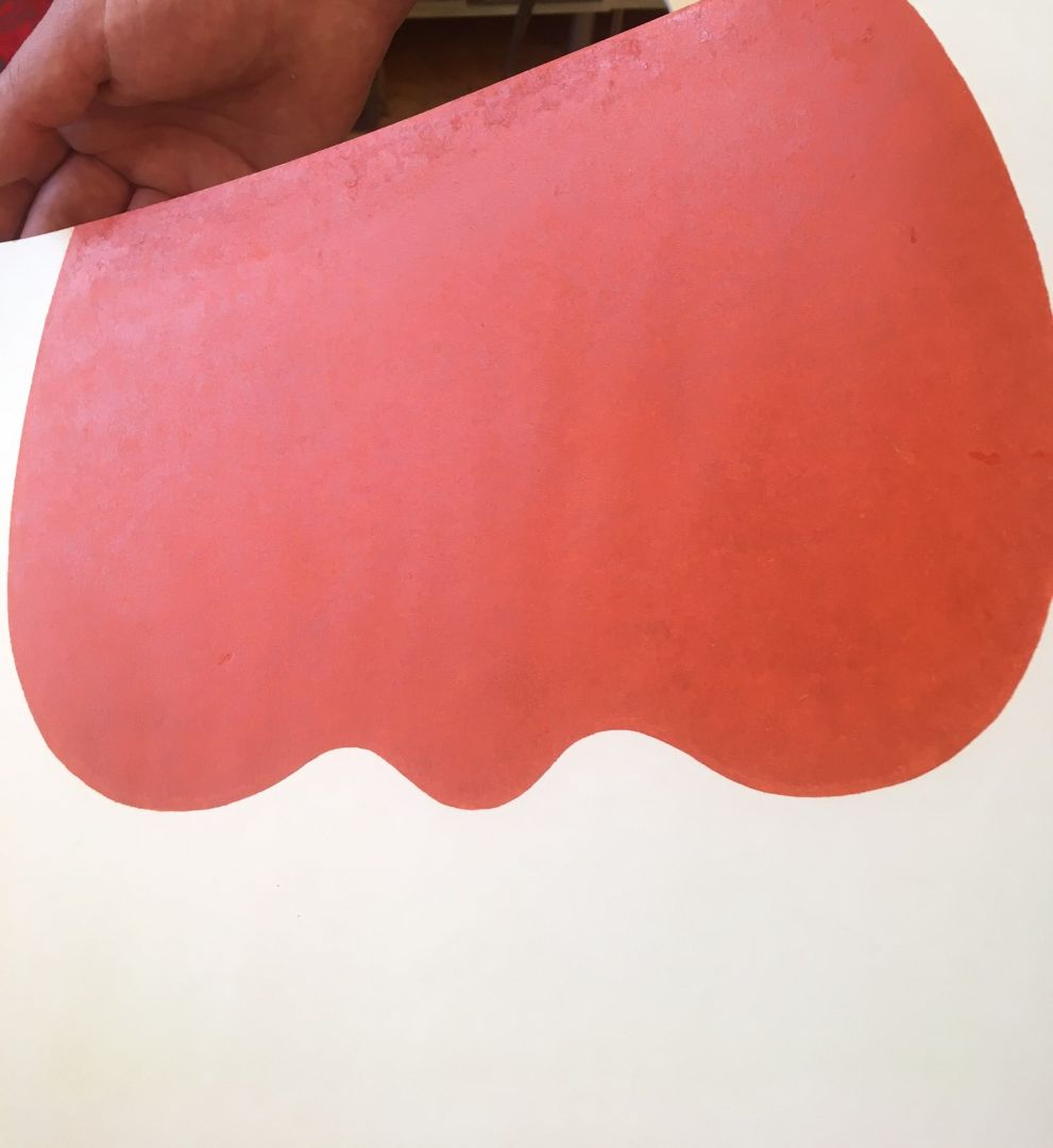 linó festék, papírnyomat, sérült, javított, szignált / 59 x 42