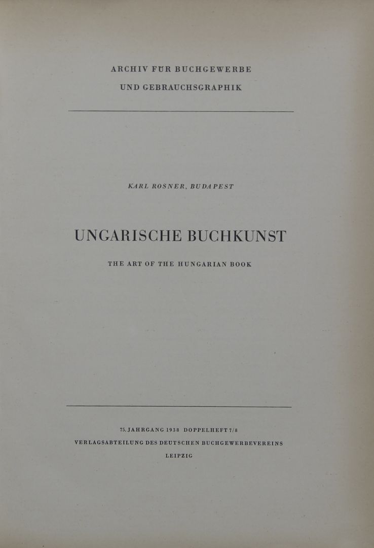 26. / Ungarische Buchkunst () / Karl Rosner: The art of hungarian book, 1938. Leipzig