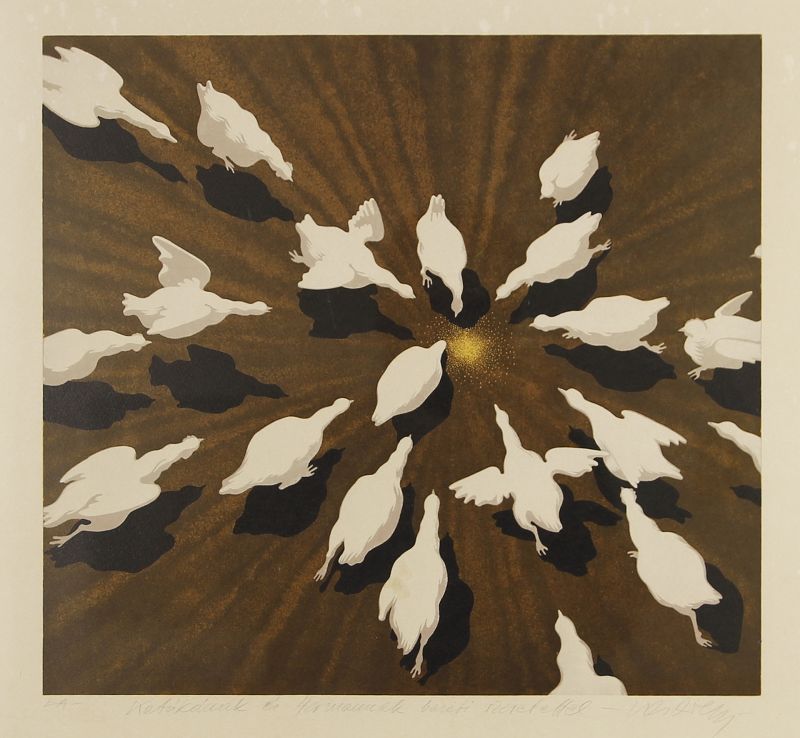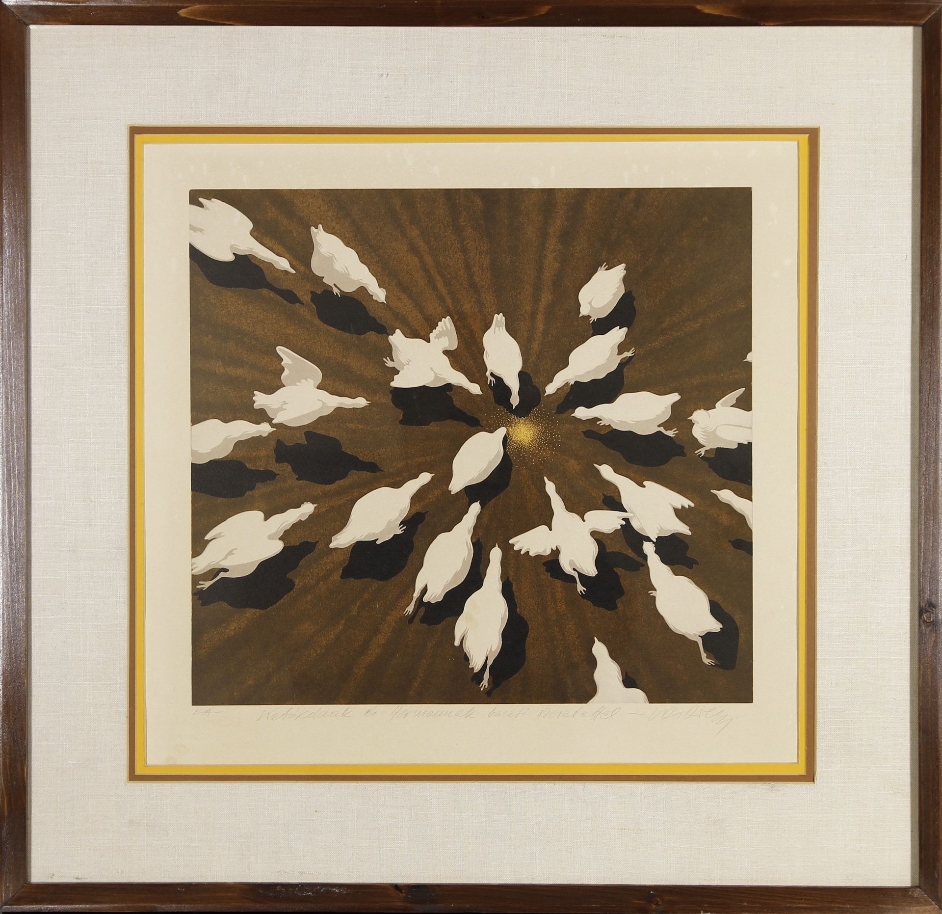 színes szita, EA, szignált, ajánlással Katókának és Hermannak / 39 x 42,8