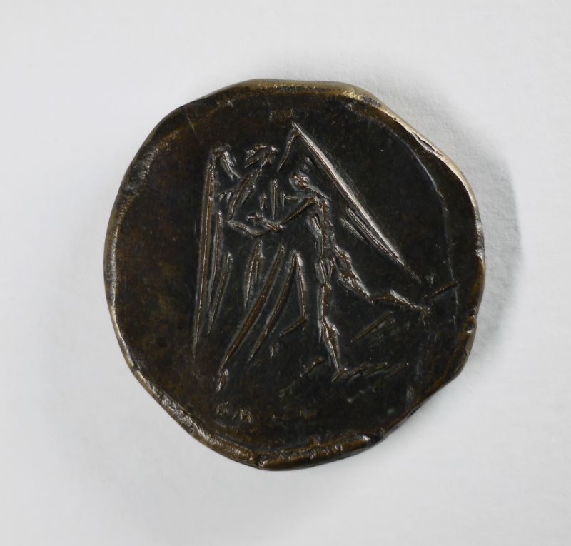 Angyal érkezése (Önarckép érem hátlapja), 1958