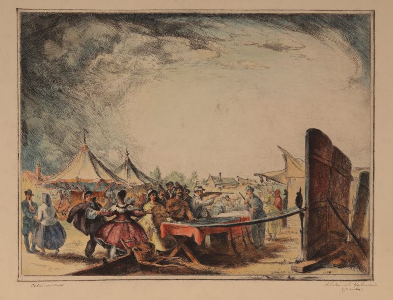 rézkarc, akvarell, szignált, próbanyomat / 29 x 38,5 cm