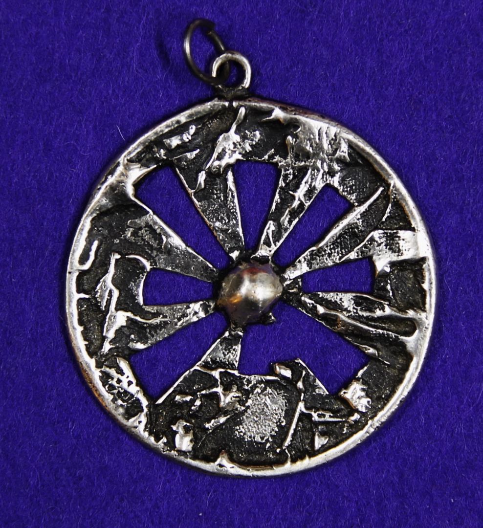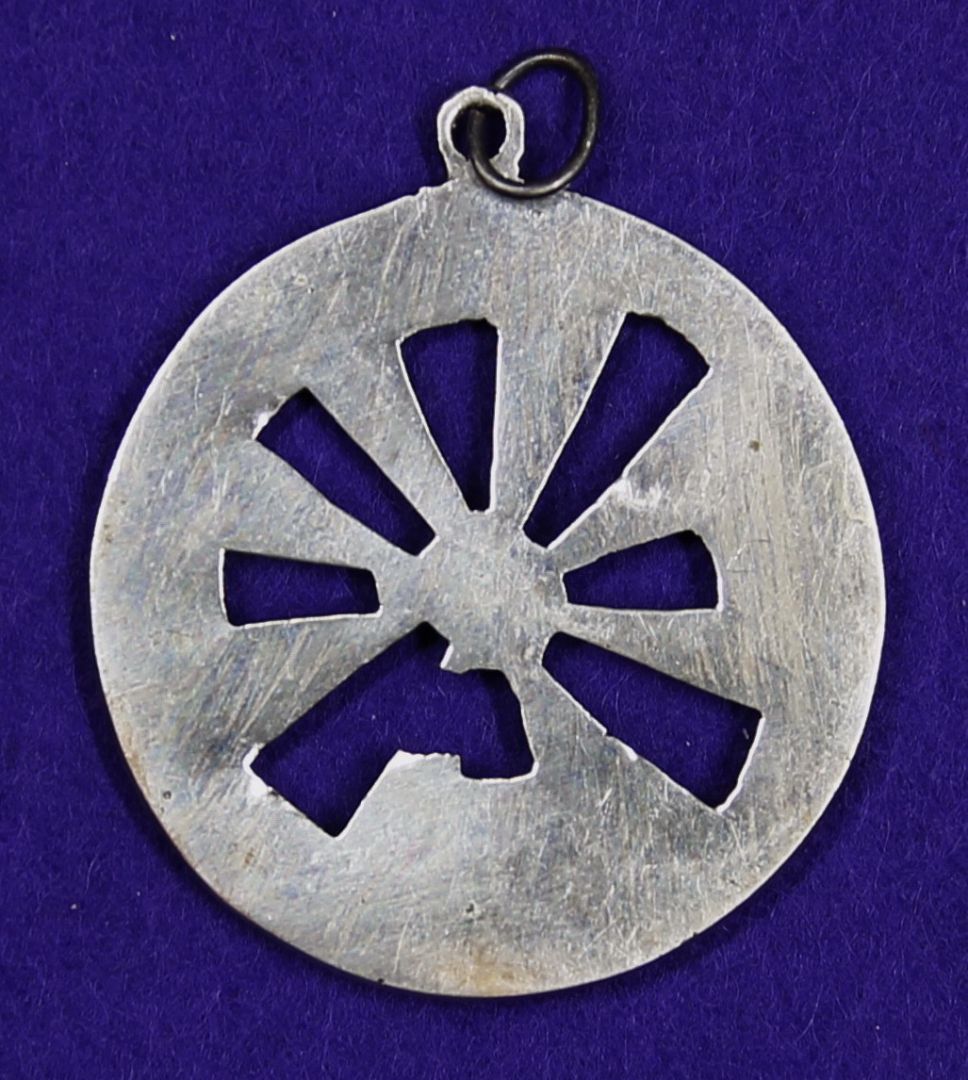 Medál, áttört levelű virág.
