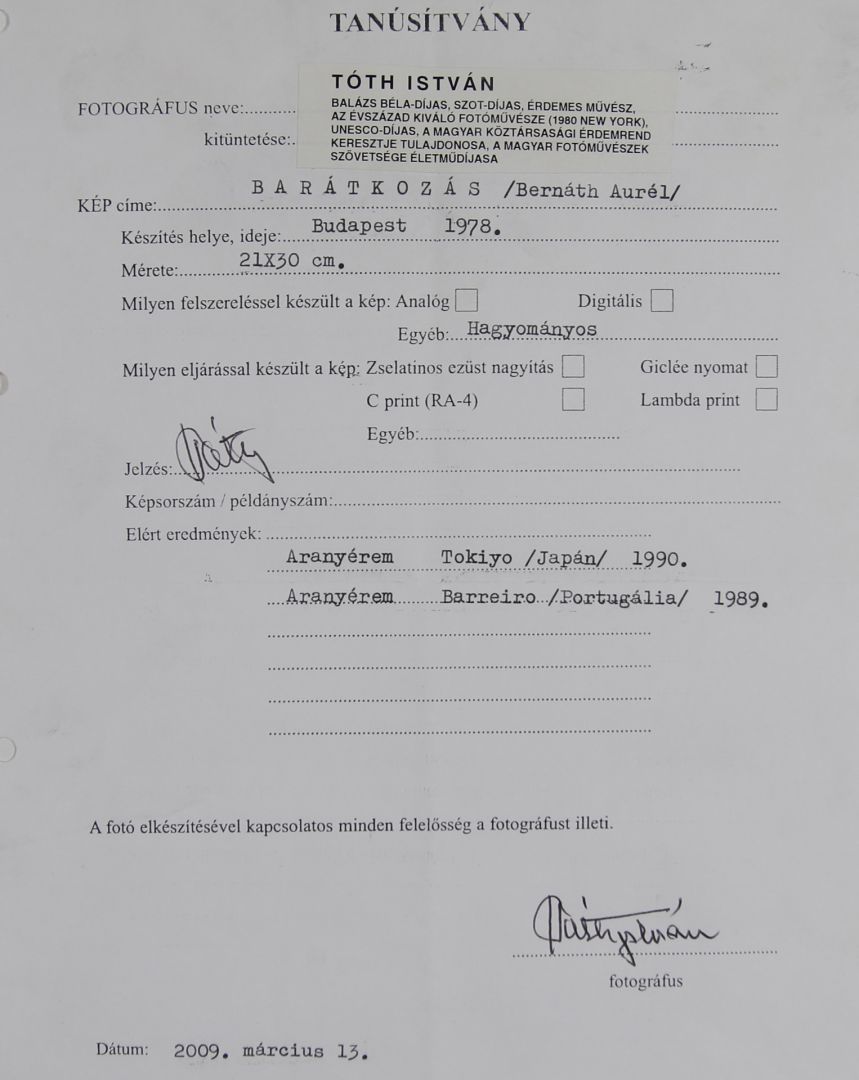 fotóprint, szignált / 29,5 x 20,8